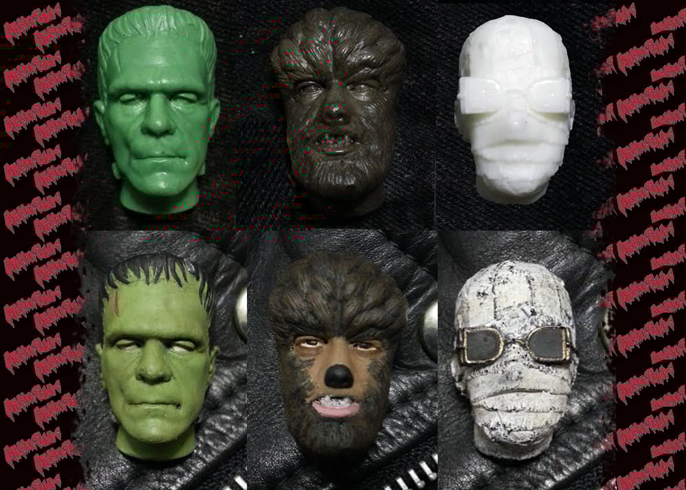 Frankie, Wolfie, and our Invisible pal are available as pictured, cast in color resin, or with a highly detailed paint job.